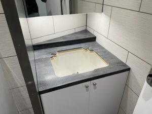 某店舗様のトイレブースと洗面台です。(穴に洗面器が はまります)