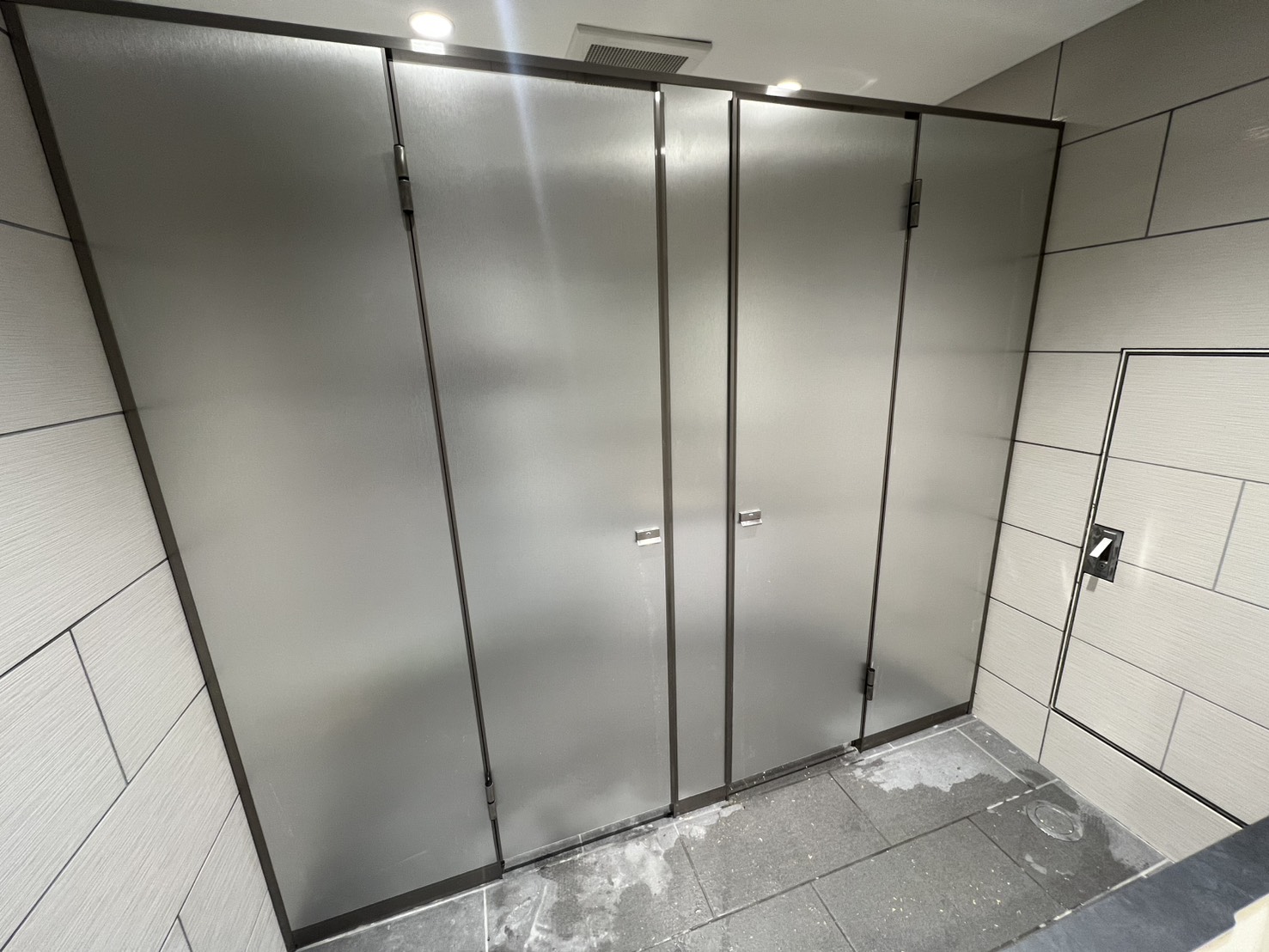 某店舗様のトイレブースと洗面台です。(穴に洗面器が はまります)