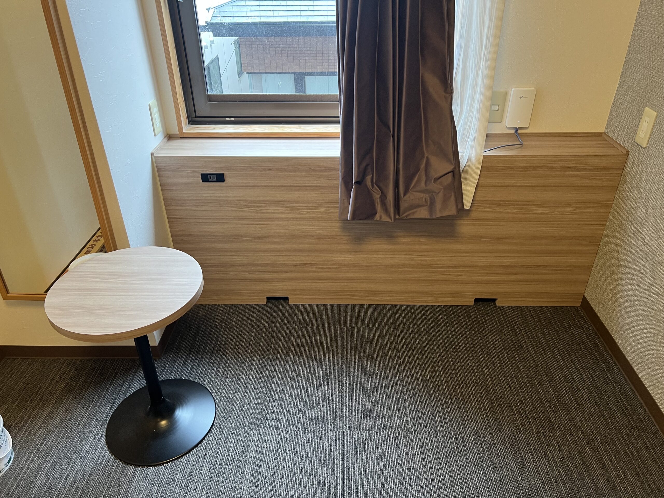 こちらは、ホテルのお部屋の作業机とヘッドボードとナイトテーブルです。